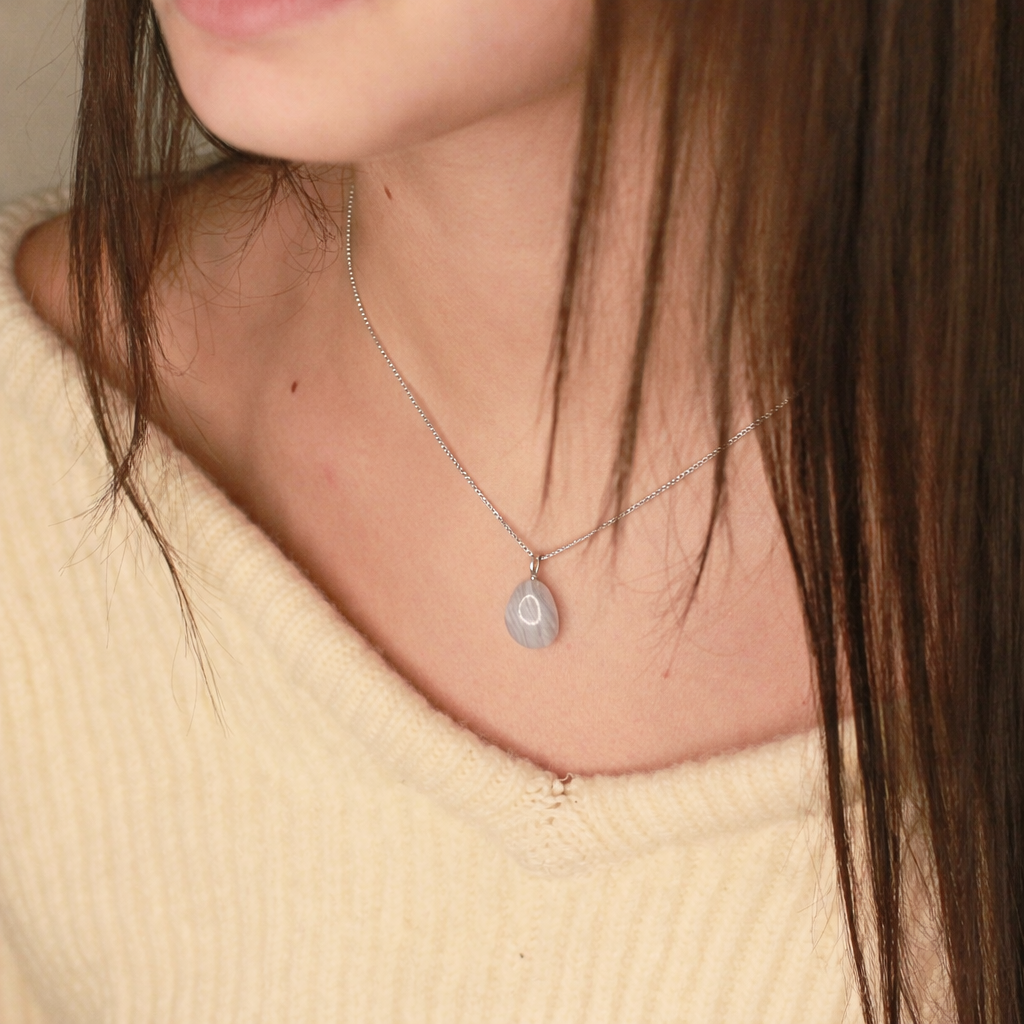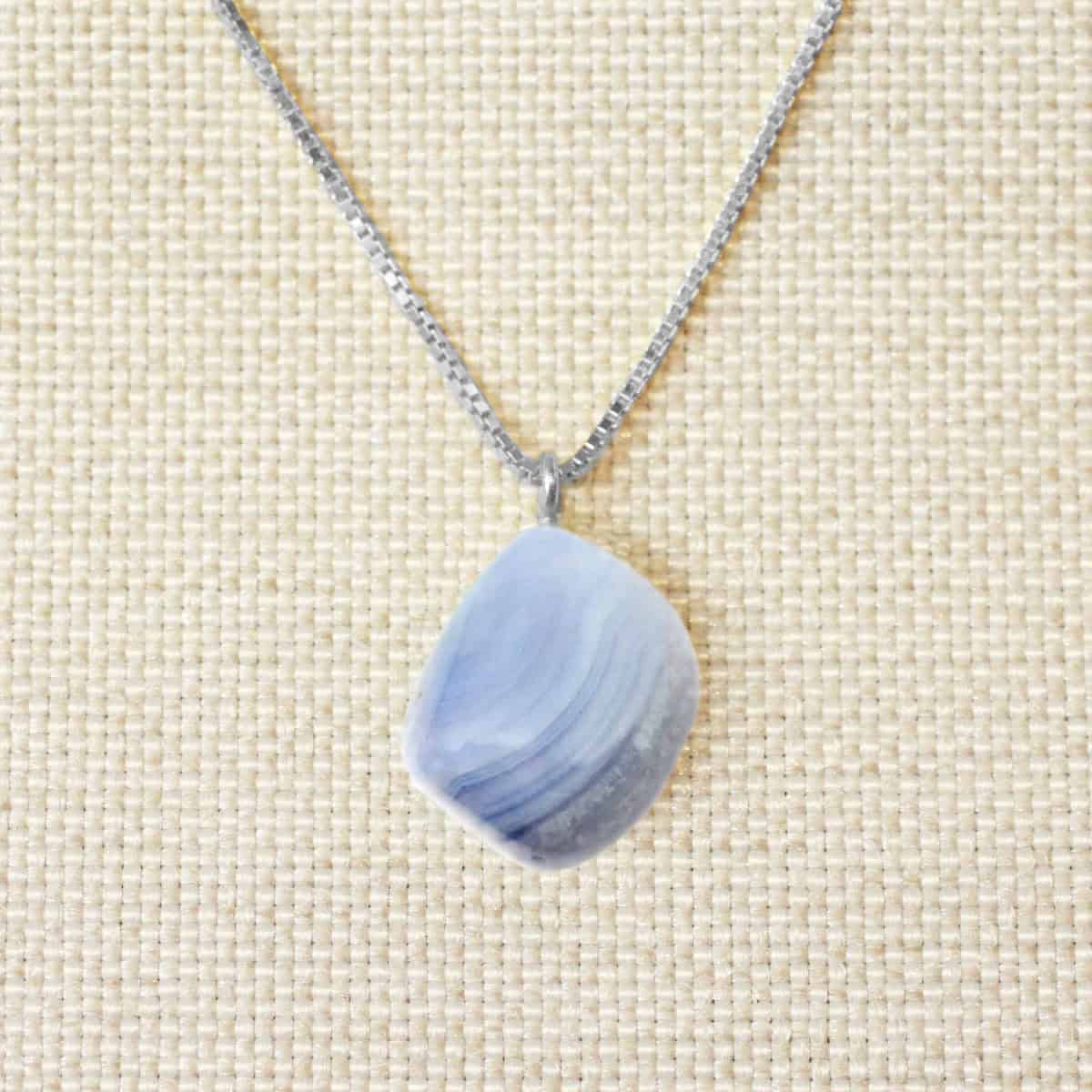 blue lace agaat trommelsteen ketting 925 zilver – YEBIN ZILVER