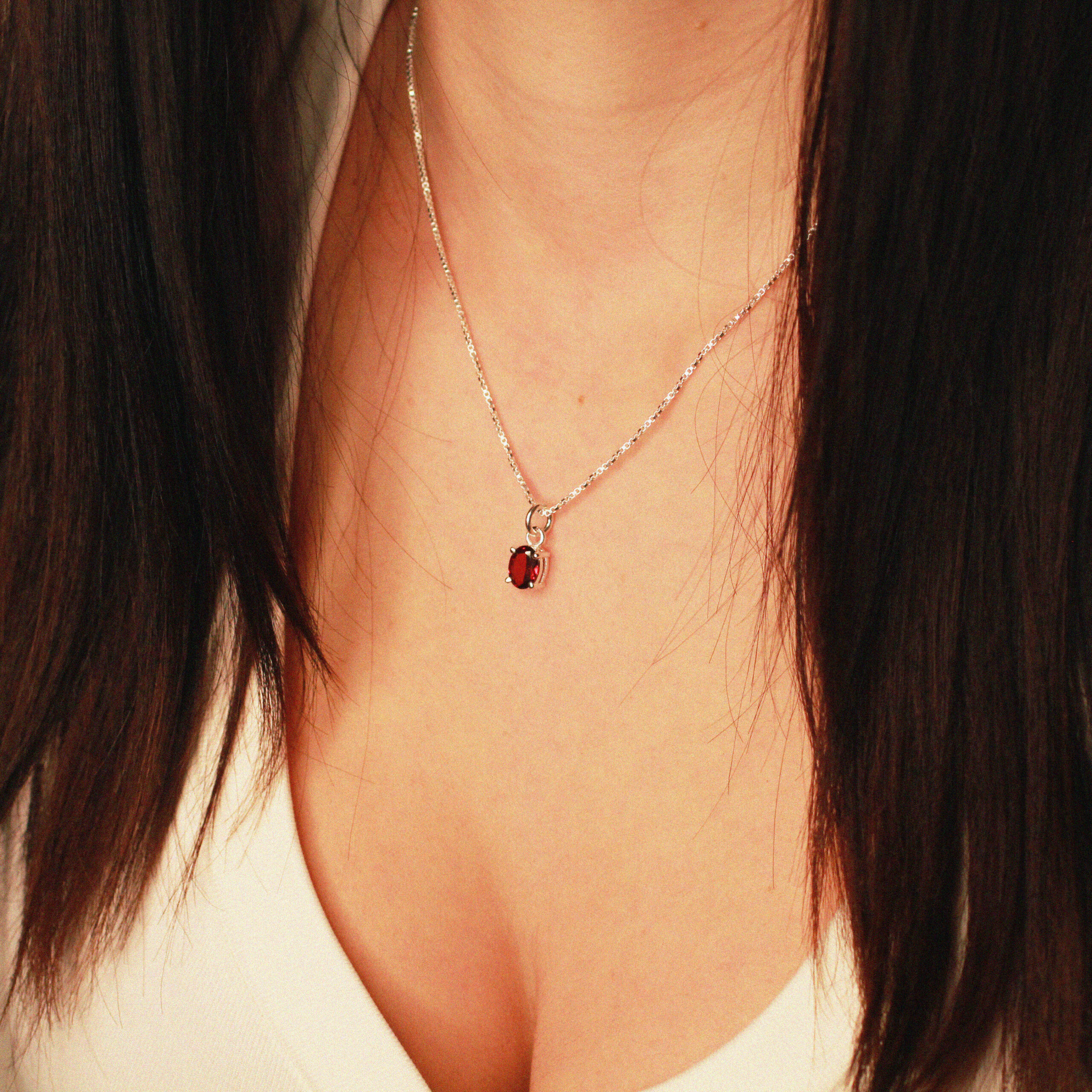 Deze handgemaakte hanger is vervaardigd van 925 sterling zilver en gezet met een natuurlijke facet geslepen granaat.