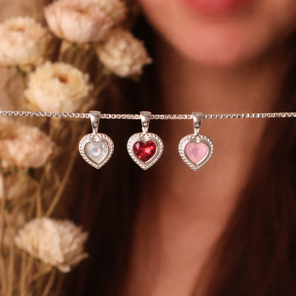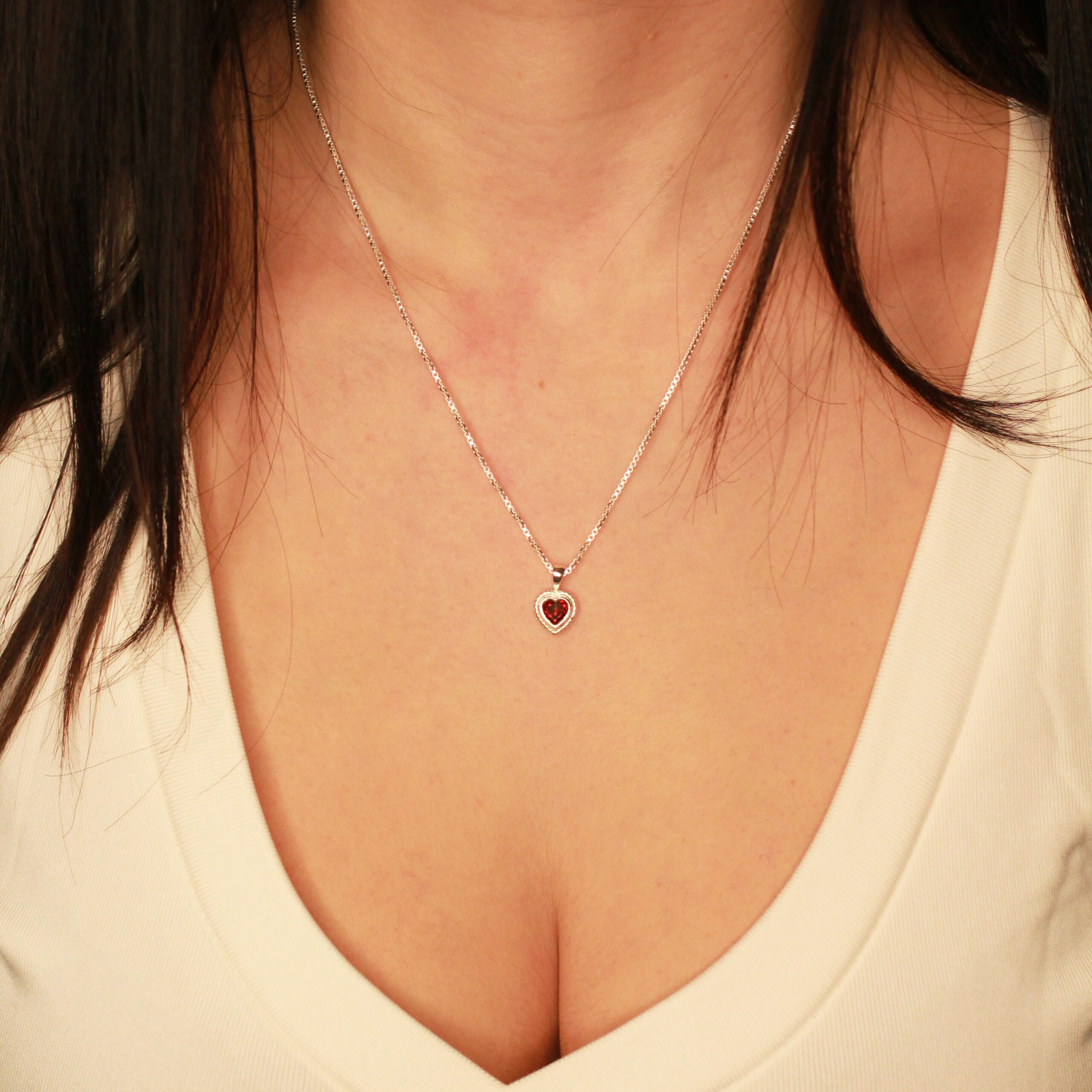 Deze handgemaakte hanger is gezet met een natuurlijke granaat edelsteen in hartvorm en vervaardigd van 925 sterling zilver.