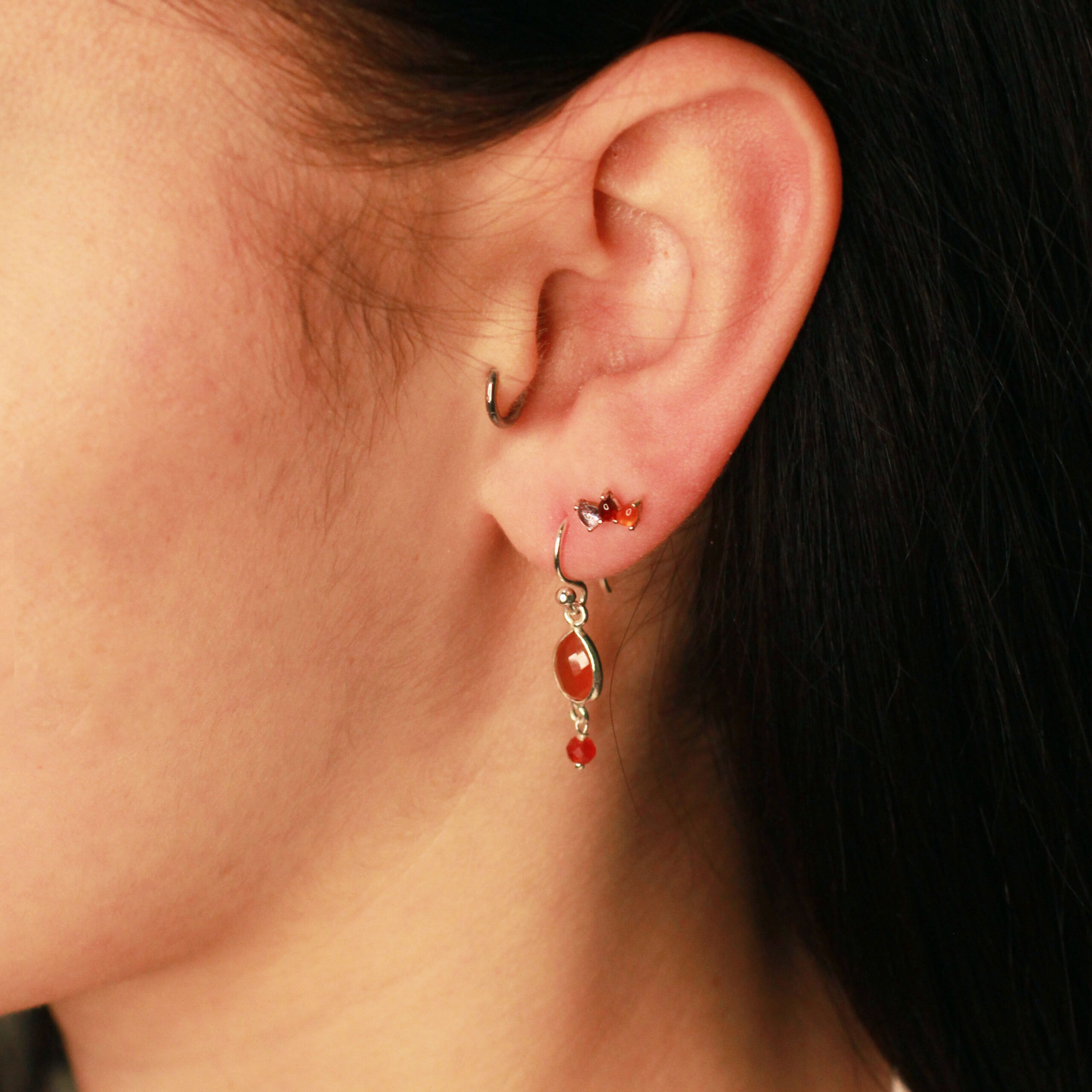 Handgemaakt 925 sterling zilver edelsteen oorstekers met carneool, granaat en amethist.