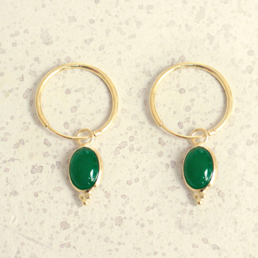Handgemaakt 925 zilver gold plated Groene onyx edelsteen oorringen.