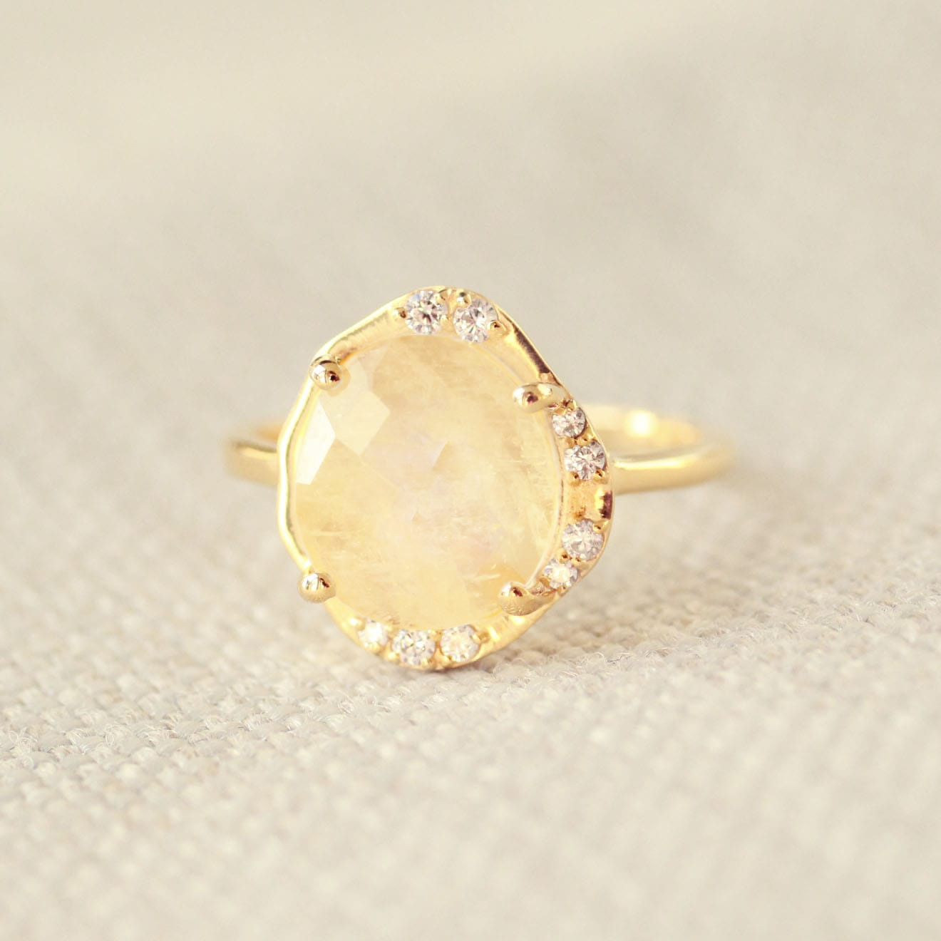 Handgemaakt 925 sterling zilver goldplated citrien met witte topaas edelsteen ring.