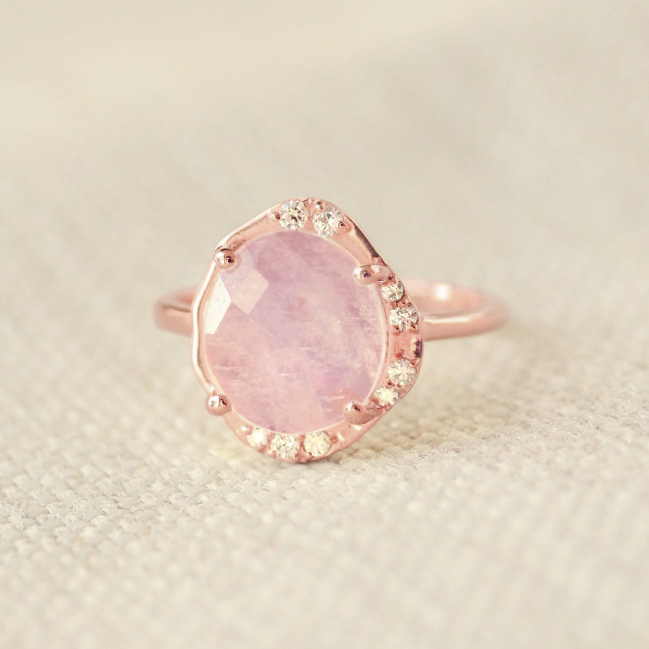 Handgemaakt 925 sterling zilver rosékleurig gold plated ruwe rozenkwarts ring.